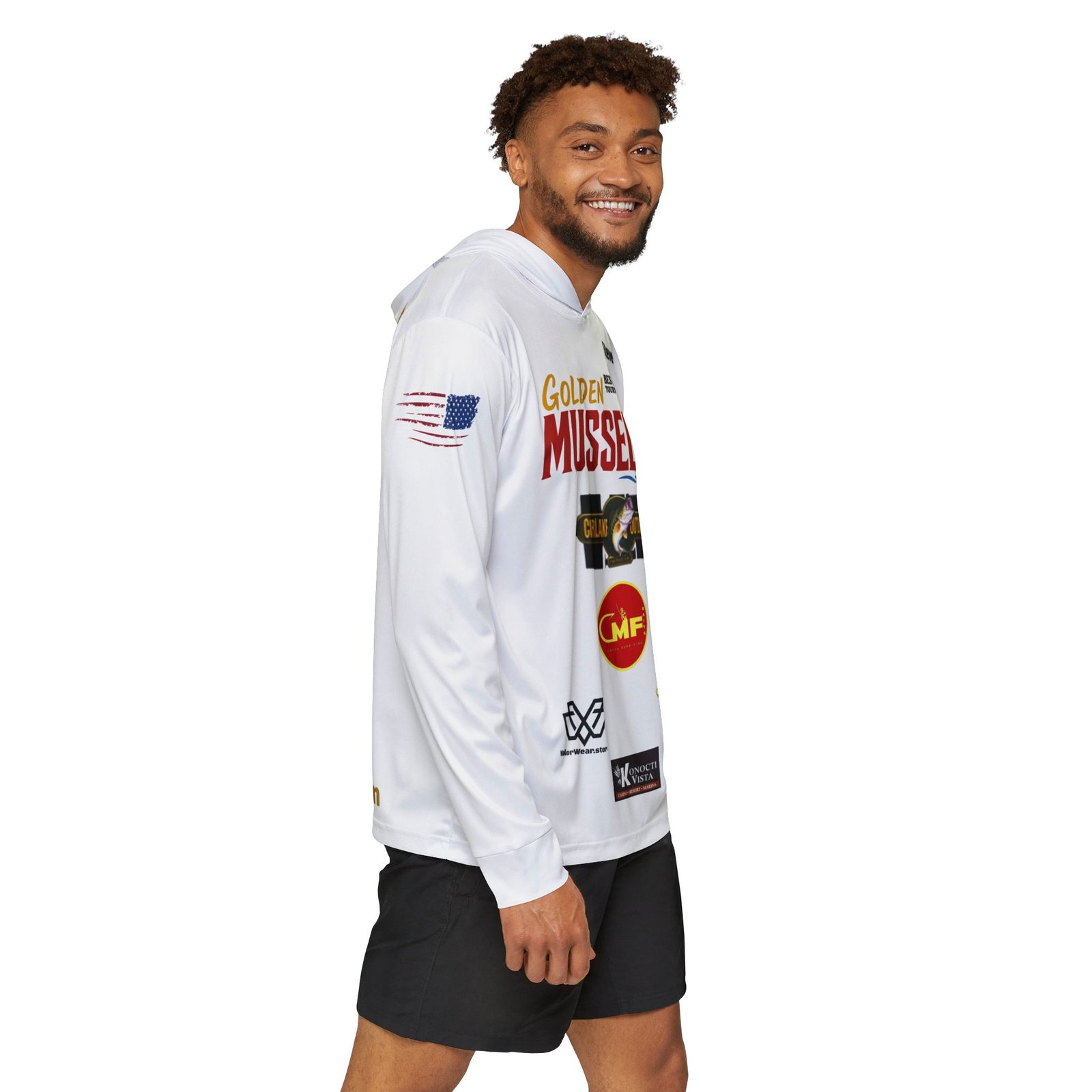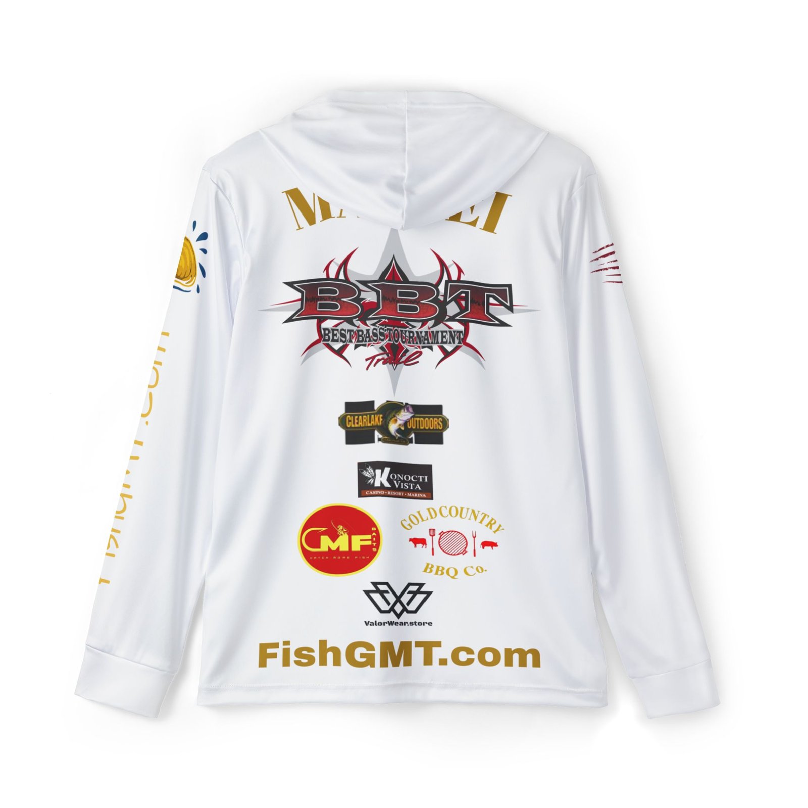 Designed exclusively for staff leadership and official representatives, the Golden Mussel Division SPF 50 Staff Performance Hoodie delivers professional-grade comfort, protection, and durability for long days on the water and at tournament operations. This custom jersey, made specifically for Tony Mello, reflects the standards and professionalism of the Golden Mussel Division within Best Bass Tournaments.